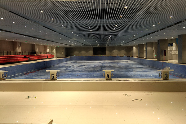 山東青島科技院大學附屬學校泳池是剛建立的室內池,是一個大型標準池,池體水容積約2500立方左右。