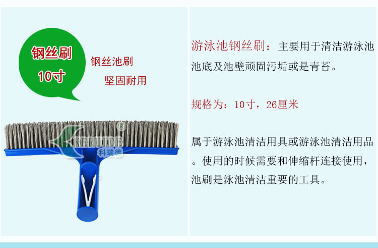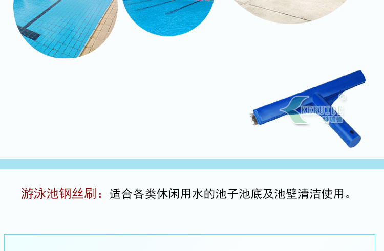 游泳池鋼絲刷:主要用于清潔游泳池池底及池壁頑固污垢或是青苔的.
