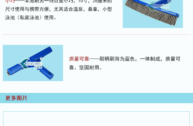 本池刷尺寸為:10寸,26厘米,使用與攜帶方便,適合溫泉,桑拿,小型泳池(私家泳池)使用。