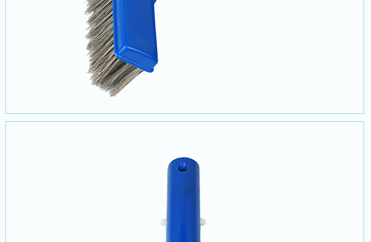 鋼絲刷屬于游泳池清潔工具之一,本產品叫法為:鋼絲刷,游泳池鋼絲池刷,鋼絲池刷。使用的時候需要和伸縮桿連接使用。是游泳池日常清潔的工具。