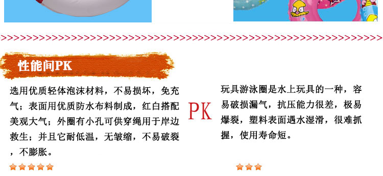 救生圈款式新穎,攜帶方便、造型美觀大氣:顏色由紅白拼成,深受廣大朋友們的喜愛。救生圈外徑約710mm,內徑約440mm,適合廣大游泳者使用。它由輕質泡沫制成的,實用性等都比充氣的救生圈好。