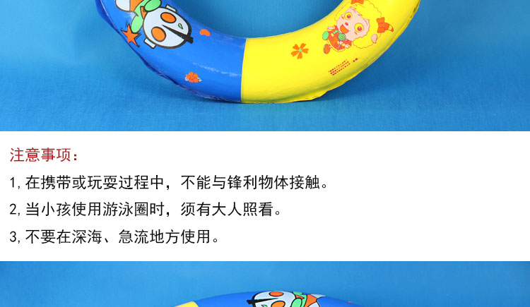 在攜帶或玩耍過程中,不能與鋒利物體接觸。當小孩使用游泳圈時,須有大人照看。不要在深海、急流地方使用。