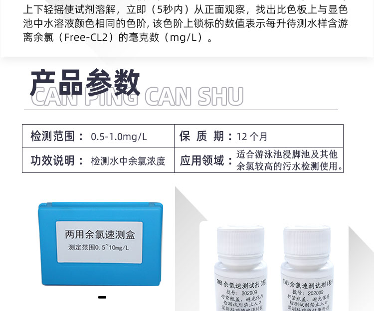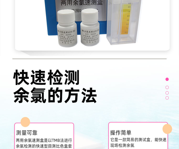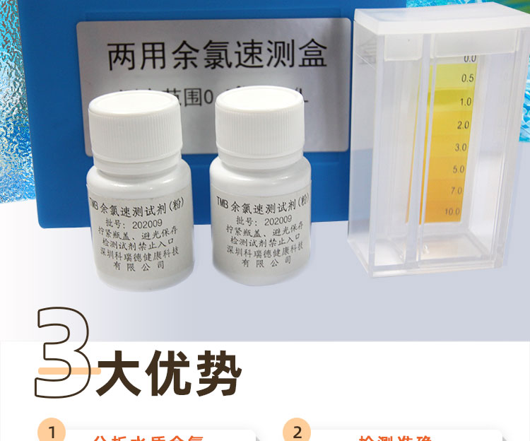 兩用余氯速測盒,是以TMB法進行余氯檢測的快速型目測比色盒套件,主要包括外塑料盒、比色皿、TMB試劑兩瓶(可用200次)。
