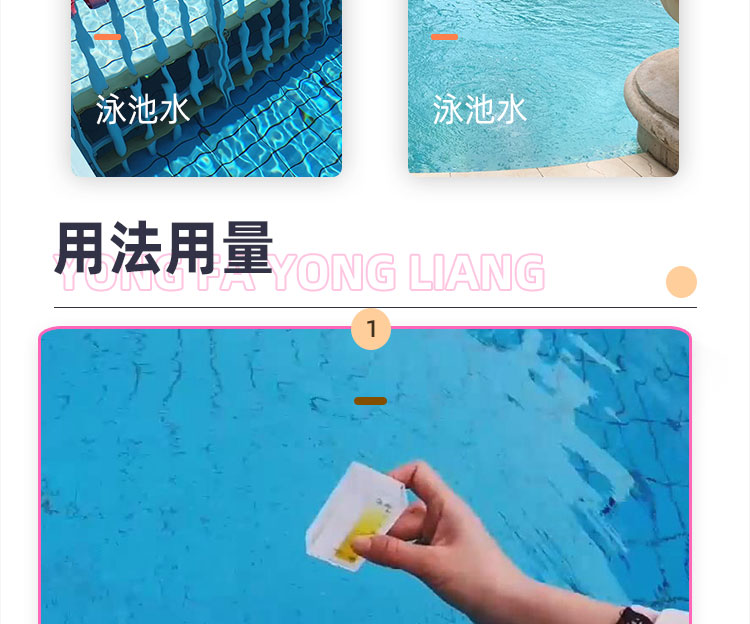 用比色皿在泳池水面下約20厘米處取水樣至刻度線;