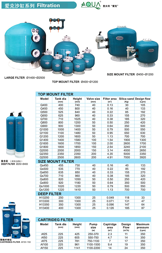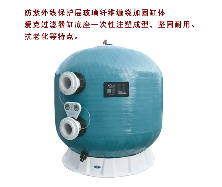 愛克沙缸,側式沙缸,過濾器,它是用于游泳池水過濾的過濾設備,能去除游泳池水中的懸浮物,使水變澄清.也叫: 泳池過濾沙缸,是組成水循環過濾系統的重要設備。