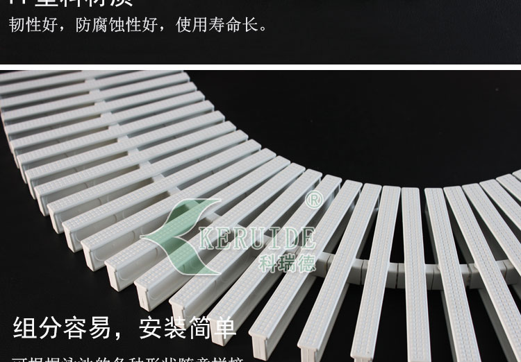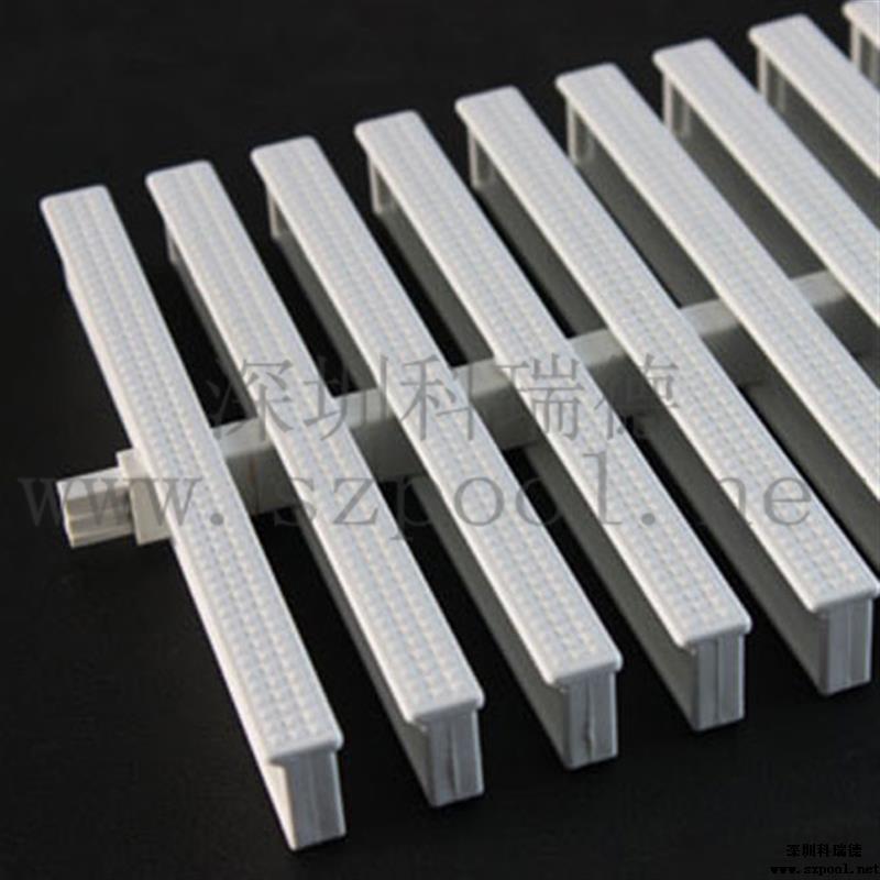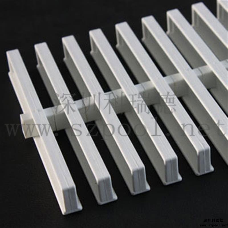 游泳池格柵,又叫泳池游泳池排水溝格柵,防滑渠面格柵,也可叫游泳池溢水格柵、防滑篦子、渠面篦子、地溝蓋;一般人們簡稱為格柵。作用為:作為游泳池四周排水溝的塑料蓋板,在保持可以方便人們的情況下又起到排水的功能。屬于游泳池排水設備。