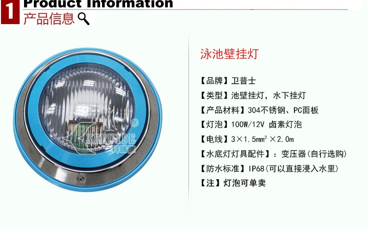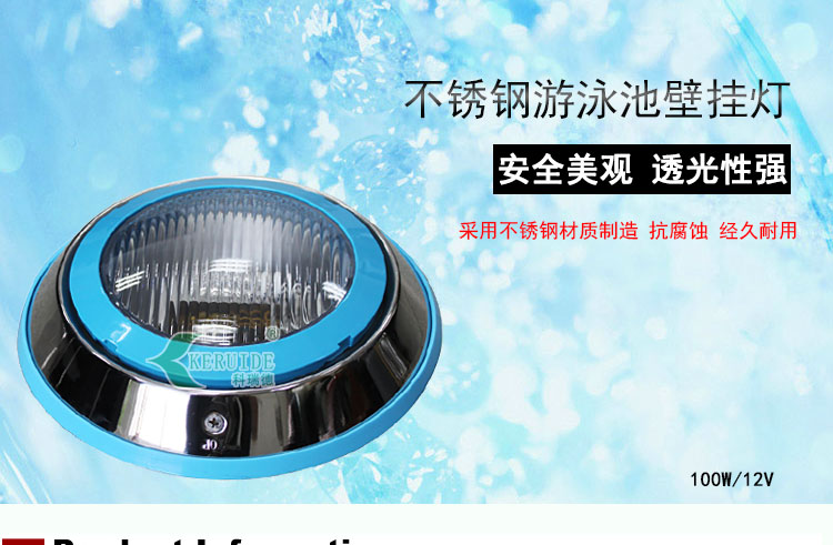池壁燈也叫壁掛燈、水下掛燈,一 般安裝在游泳池、景觀池或噴泉的池壁,為此也叫游泳池池壁燈,用于水下裝飾及照明,不僅可以使泳池更加蔚藍美觀,還可以使泳客看清泳池水下情況,讓泳客暢快游泳。本產品具有防水、低電壓,性能穩定,安全可靠,使用壽命長久,價格實惠!