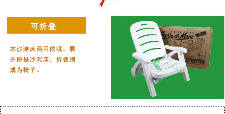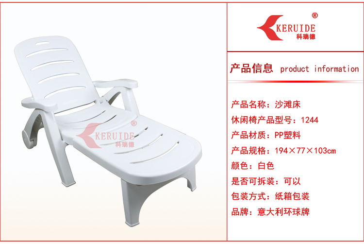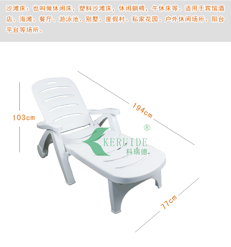 沙灘床,也叫做休閑床,塑料沙灘床,休閑躺椅,午休床等。適用于賓館酒店、海灘、餐廳、游泳池、別墅、度假村、私家花園、戶外休閑場所、陽臺平臺等場所。本產品為意大利進口環(huán)球牌沙灘床,具有質量可靠,耐老化,造型美觀等優(yōu)點。