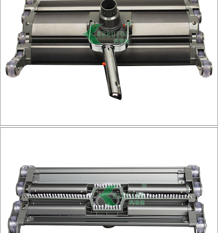 2,特殊設(shè)計(jì)的輪子:外面的四個(gè)輪子往上翹約45°,可以從池底爬行到池壁,且利于吸池壁與池底連接處的的臟物。