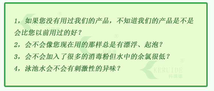 1、使用含氯消毒粉時(shí)水的PH值會(huì)下降,請(qǐng)注意使用PH調(diào)節(jié)劑將PH保持在7.0-7.8之間;