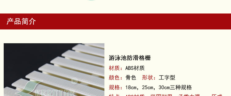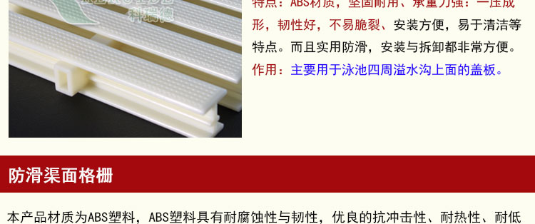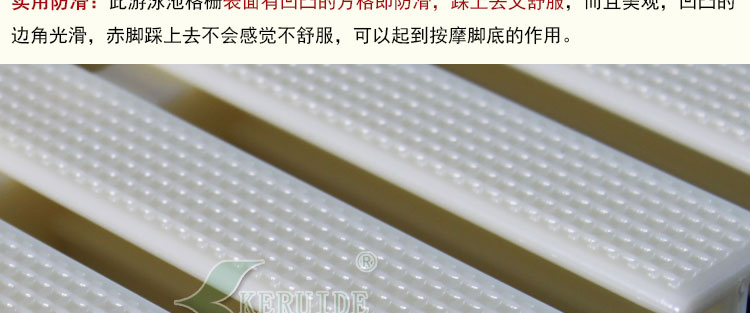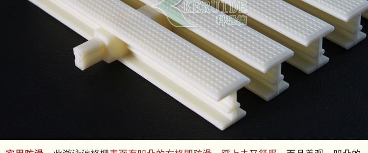 工字型游泳池格柵的特點為寬面格柵,單挑面寬就有24mm,游泳格柵是作為排水溝上面的塑料蓋板,游泳池格柵又叫:游泳池排水溝格柵,防滑渠面格柵,游泳池溢水格柵,簡稱格柵。