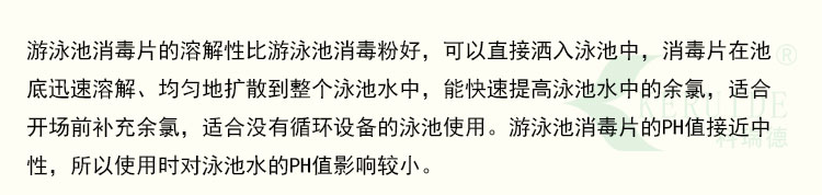 1、游泳池消毒片可以直接灑入泳池中,無需預先溶解;