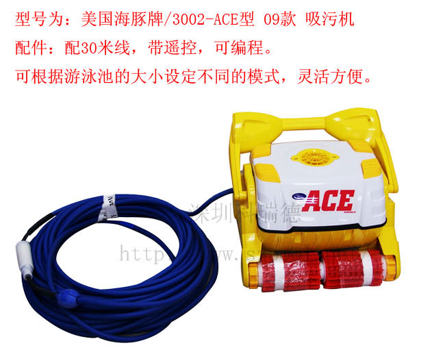 海豚全自動吸污機,型號為美國海豚牌3002型 09款。配30米線,帶遙控,可編程。可根據(jù)游泳池的大小設(shè)定不同的模式,靈活方便。