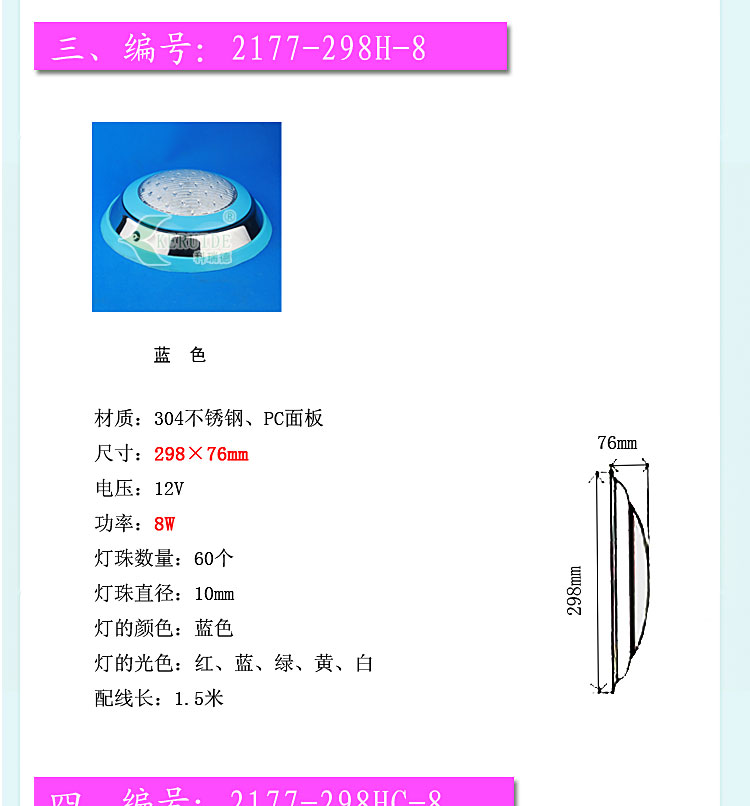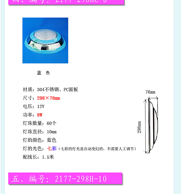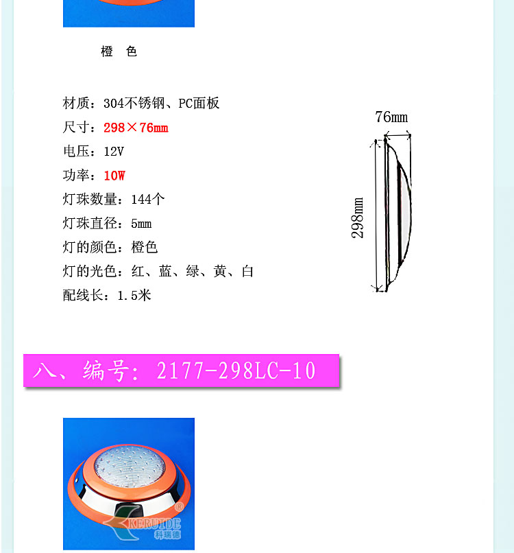 燈殼采用優質304不銹鋼材料,透光蓋改用強度高的透明材料,透光性好,堅固耐用,防腐蝕性高。防水設計,多種顏色邊可選,不需預埋,采用掛壁安裝。符合IP68防護等級低電壓標準,設有地線接頭,使用放心。