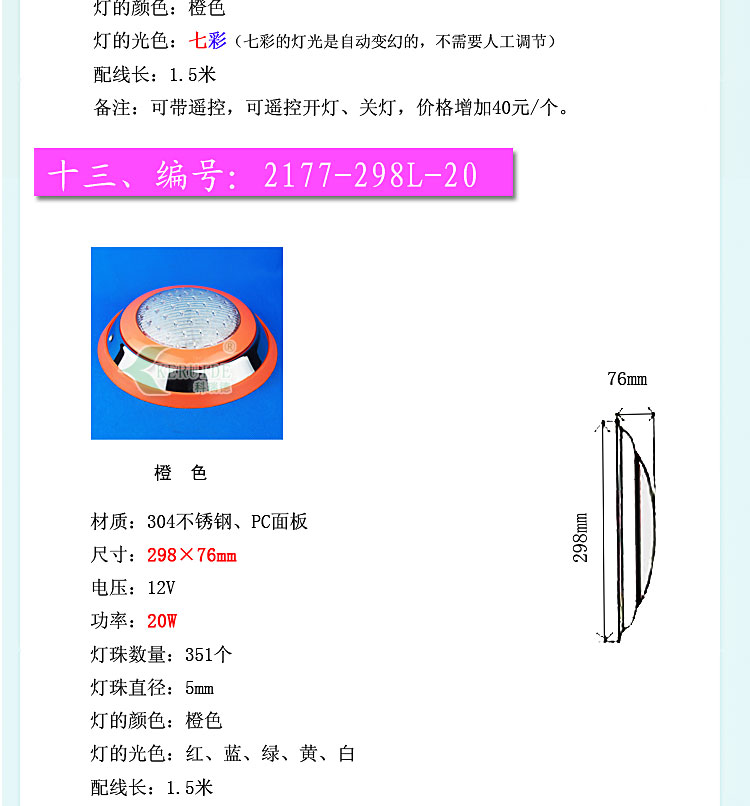 產品名稱:池壁掛燈,水下掛燈