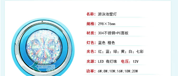 池壁燈:也叫壁掛燈、水下掛燈,一般安裝在游泳池、景觀池或噴泉的池壁, 用于水下裝飾及照明,不僅可以使泳池更加蔚藍美觀,還可以使泳客看清泳池水下情況,讓泳客暢快游泳。