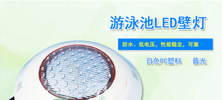 游泳池掛燈:又叫池壁掛燈,水下掛燈等,按泳池管理制度要求,每個泳池都需要有泳池掛燈以保證游泳池照明。池壁掛燈除用于泳池外,還用于溫泉,噴泉,景觀池等水下照明。即能照明,又很美觀。