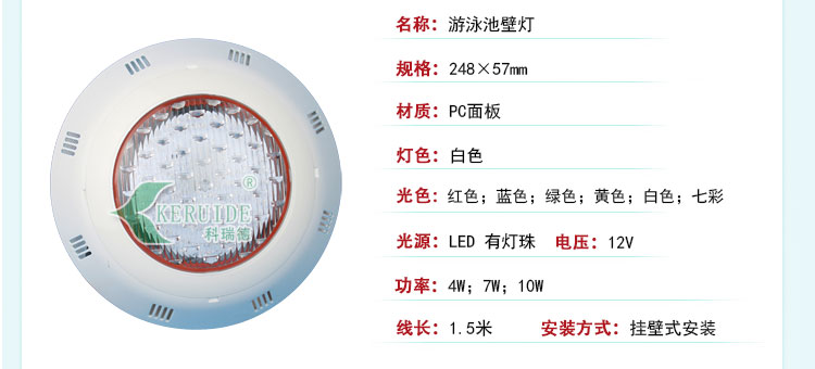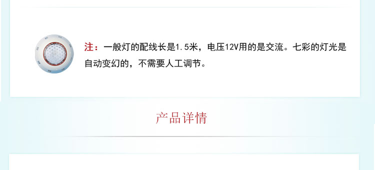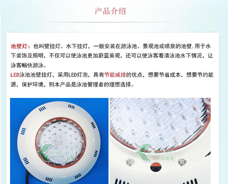 適合場所:應用于各種噴泉、水池、游泳池及魚缸等照明裝飾。