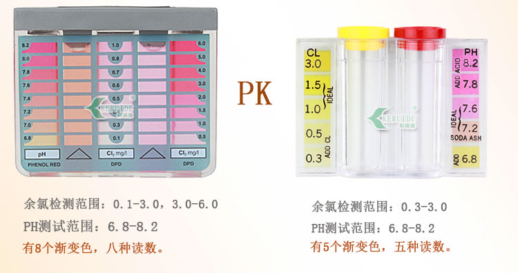 【檢測范圍】:余氯范圍:0.1-6.0mg/L?? pH范圍:6.8-8.2