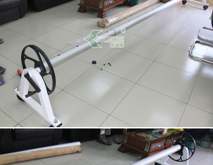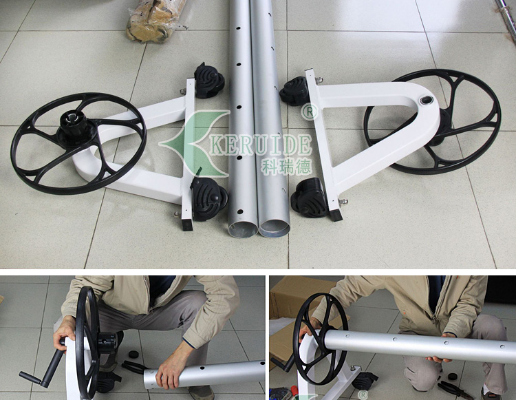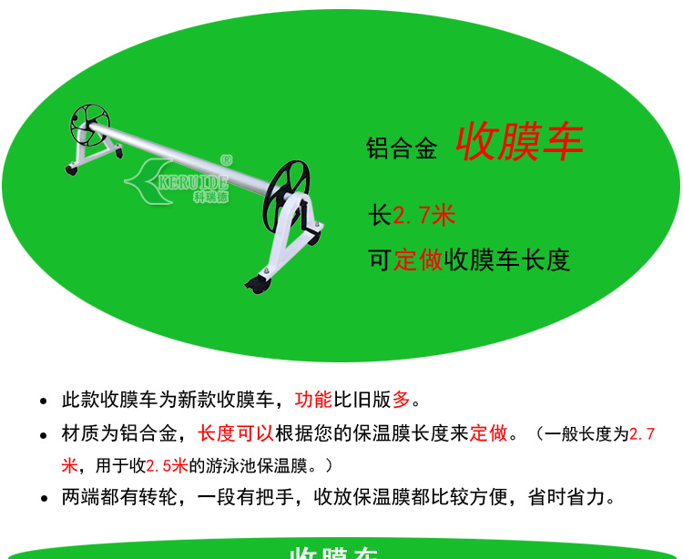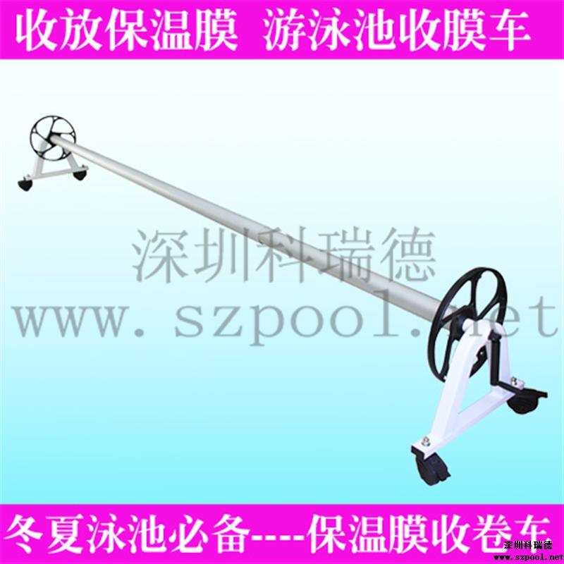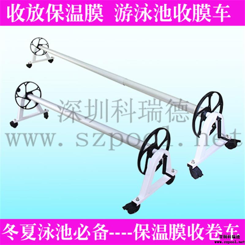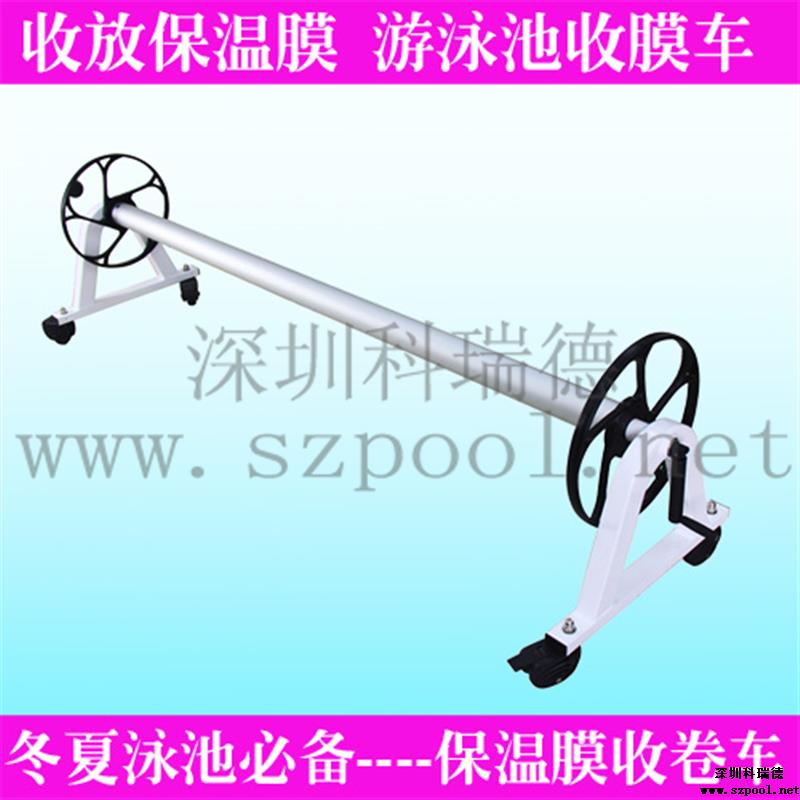 保溫膜收膜車:用于收放泳池保溫膜的。本款保溫膜收膜車采用強韌鋁合金制成,質(zhì)量可靠,耐腐蝕,使用壽命長久。造型簡單,使用方便。