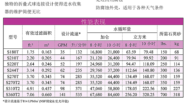 確保水被均勻地分配到沙床上。全尺寸內部管路,以達到順暢的水流表現。