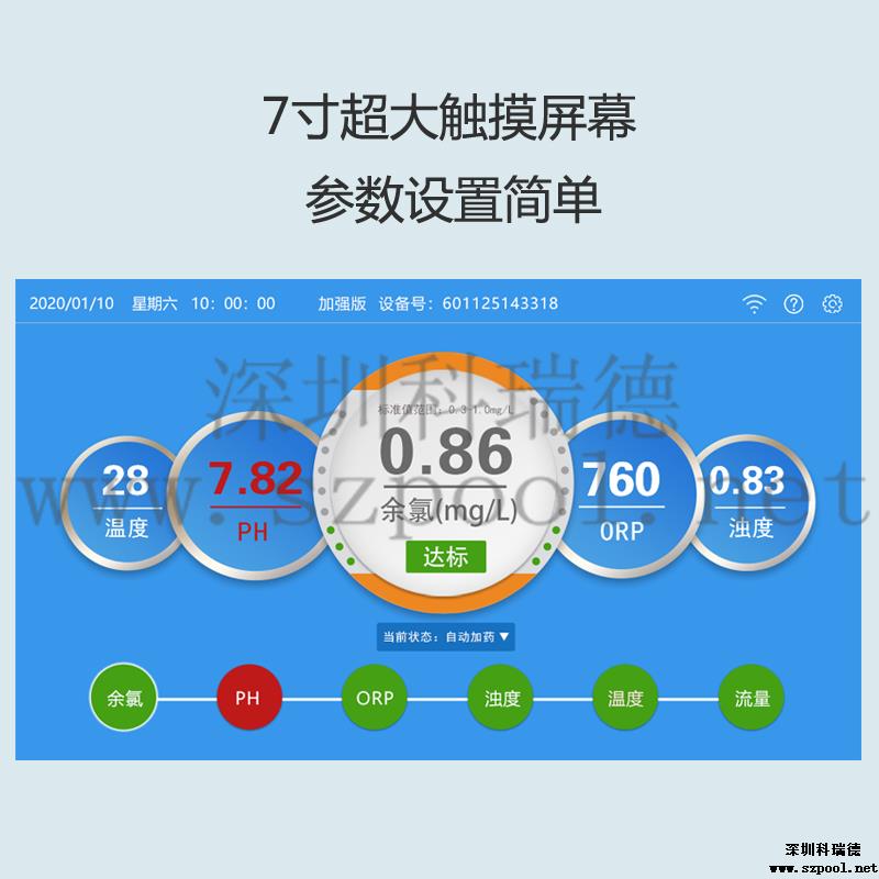 由于這些在線監(jiān)測儀測不了氯,加藥時無法準(zhǔn)確控制余氯,導(dǎo)致余氯指標(biāo)經(jīng)常不合格,使很多游泳池工作者工作難以開展,科瑞德基于用戶及實際需求,自主研發(fā)了一款能夠監(jiān)測余氯、PH、溫度三大參數(shù)并且可24小時在線監(jiān)測水質(zhì)的泳池在線監(jiān)測儀,還可以自動智能變頻控制加藥,擁有實用新型、發(fā)明專利(ZL201620124788.1/ZL201720455331.3/ZL201520947011.0),是具有自主知識產(chǎn)權(quán)的專利產(chǎn)品——衛(wèi)普士余氯pH在線監(jiān)測儀/水質(zhì)在線監(jiān)測儀.