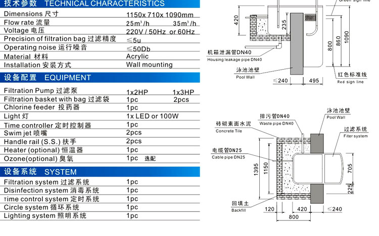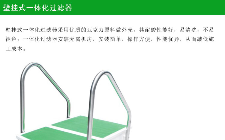 【應(yīng)用范圍】:各類型私家泳池,標(biāo)準(zhǔn)游泳池,非標(biāo)準(zhǔn)游泳池,按摩池等專用一體化過濾壁掛式設(shè)備。