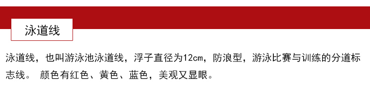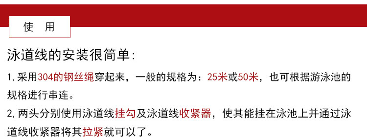 【規格】:25米或50米,采用304的鋼絲繩穿起來,也可根據游泳池的規格進行訂制。