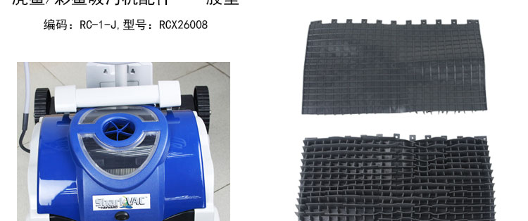 膠墊:這種膠墊是彩鯊吸污機原裝配件,是RC-4彩鯊不爬墻款的配件。不過可以通用于彩鯊和虎鯊。虎鯊吸污機本身是可爬墻的,其前后兩個輪都滾筒,不過也可以換成這種膠墊,膠墊不可爬墻。
