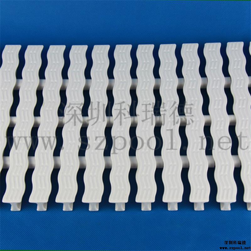 游泳池格柵是作為游泳池四周排水溝的塑料蓋板,既可以起到排水功能,同時可以方便人們行走,并具有防滑的效果,是游泳池必不可少的設備。另外格柵表面有波浪形凸紋,可以起到按摩腳底的作用。此格柵不但易用耐用,而且容易清潔,維護方便。并且可以拆卸和拼裝,無需裁剪。
