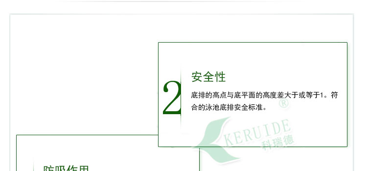 2、底排的高點(diǎn)與底平面的高度差大于或等于1,符合的泳池底排安全標(biāo)準(zhǔn)。