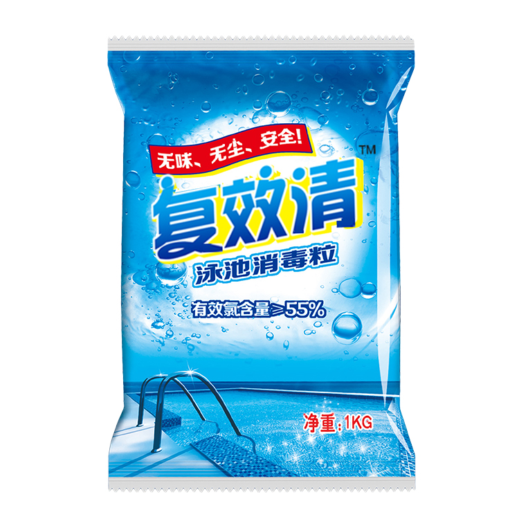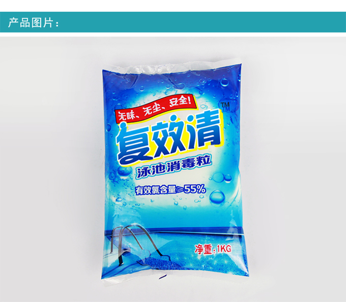 復(fù)效清泳池消毒粒,屬于游泳池消毒劑的一種:有效氯含量≥55%,其特點(diǎn)是:氯味輕——穩(wěn)定性好!無(wú)粉塵——不用擔(dān)心吸入鼻孔!pH中性——不會(huì)導(dǎo)致池水PH下降!溶解性好——池底不會(huì)有雜質(zhì)!