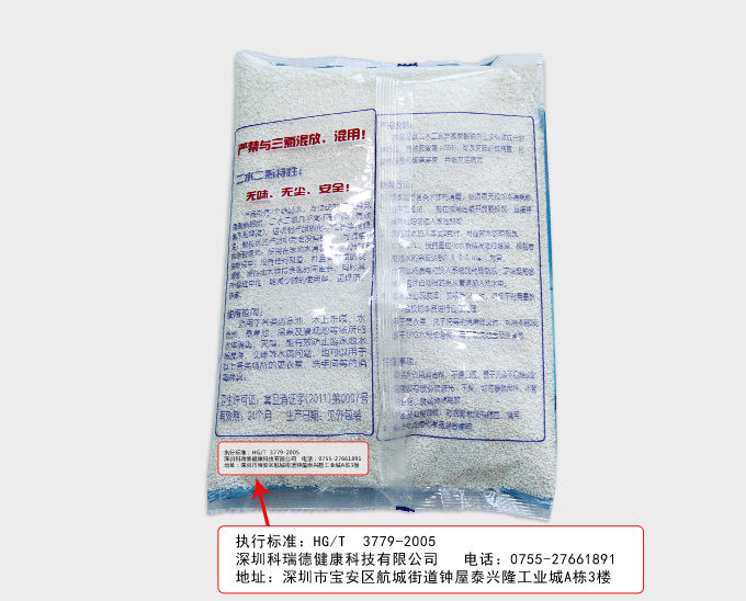 3、每立方水加入本品2克時(shí),可提高水的有效氯1.1mg/L,投藥量應(yīng)視水質(zhì)情況進(jìn)行增減,投加后使池水的余氯達(dá)到0.3-1.0 mg/L為宜。
