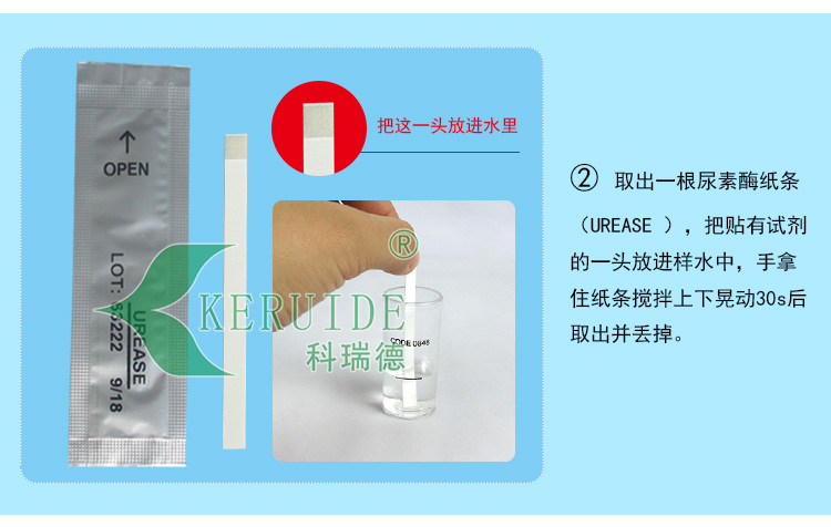 配件信息:尿素酶試劑4根紙條,尿素氨檢測(cè)紙條4根,量杯1個(gè)