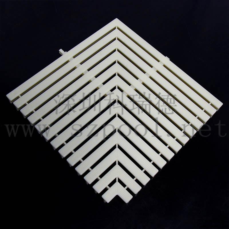 【格柵轉(zhuǎn)角質(zhì)量可靠】:是由ABS材料制成,是目前游泳池格柵理想的材料,具有耐腐蝕性與韌性。