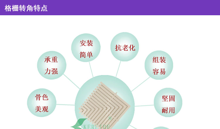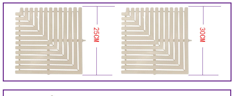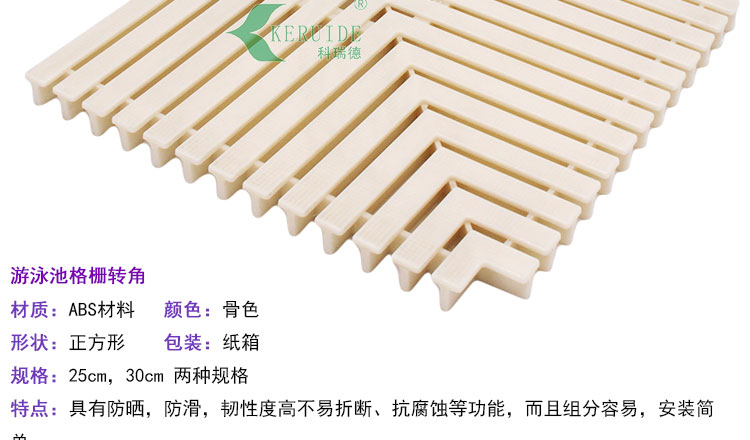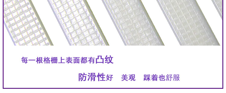 【格柵轉(zhuǎn)角特點(diǎn)】具有防曬,防滑,韌性高不易折斷,抗腐蝕等功能,組分容易,安裝簡(jiǎn)單,使用安全,表面有凸紋具有防滑,腳底按摩功能!