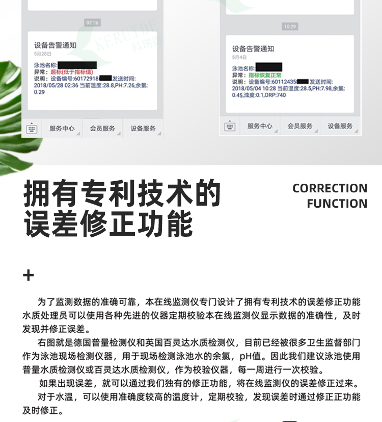 泳池水質(zhì)超標(biāo),微信可接受信息提醒。