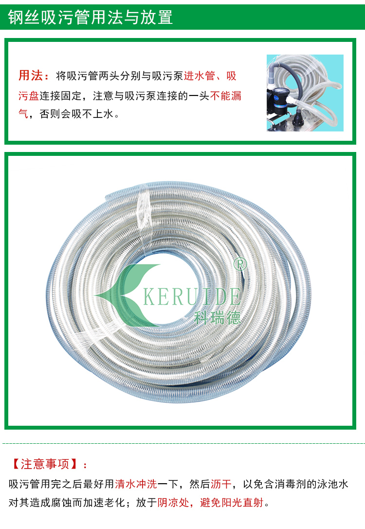(注:如果池面有樹葉、塑料袋等其他垃圾,請用撈網打撈走,不管是游泳池手動還是自動吸污機都吸不了漂浮于水面的垃圾,另外池壁或池底已長出的青苔不一定能完全吸掉,如遇到此類粘著力較強的污物,需手動使用清潔刷刷掉,請知悉!)
