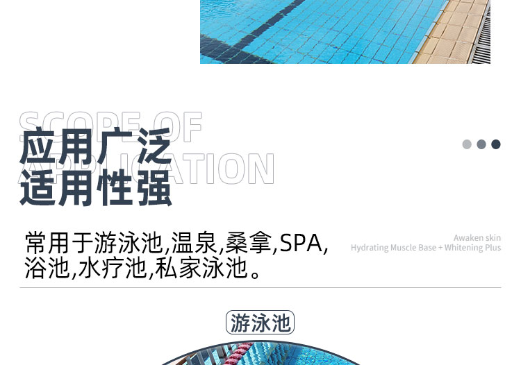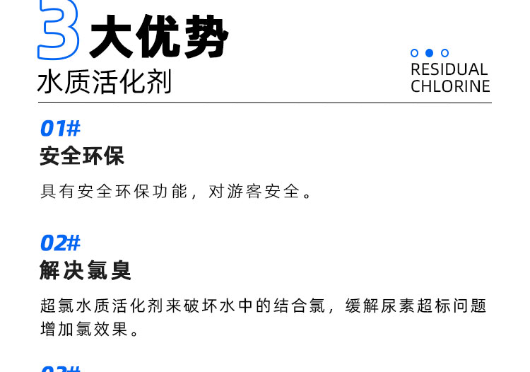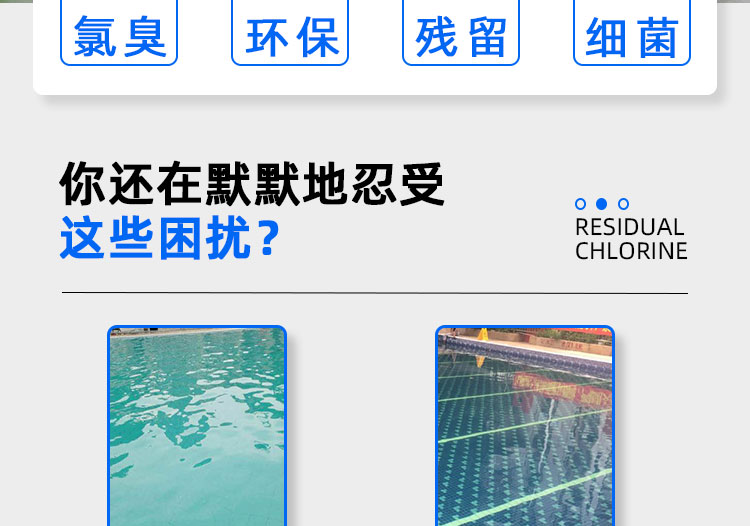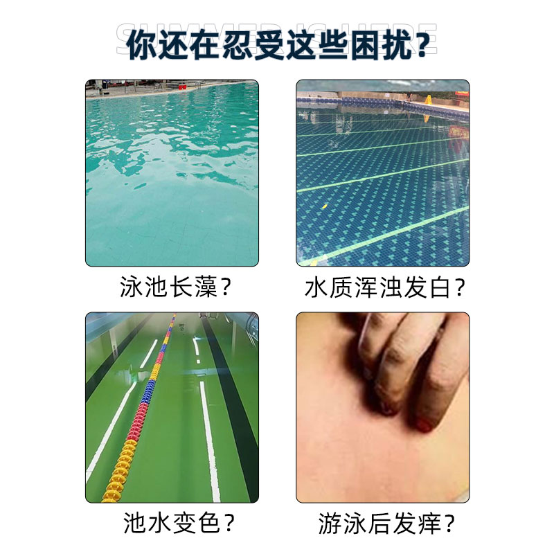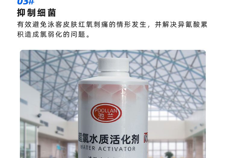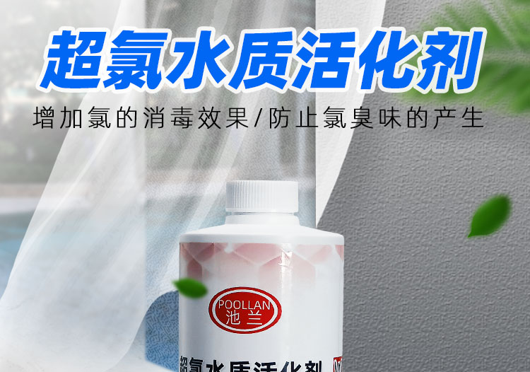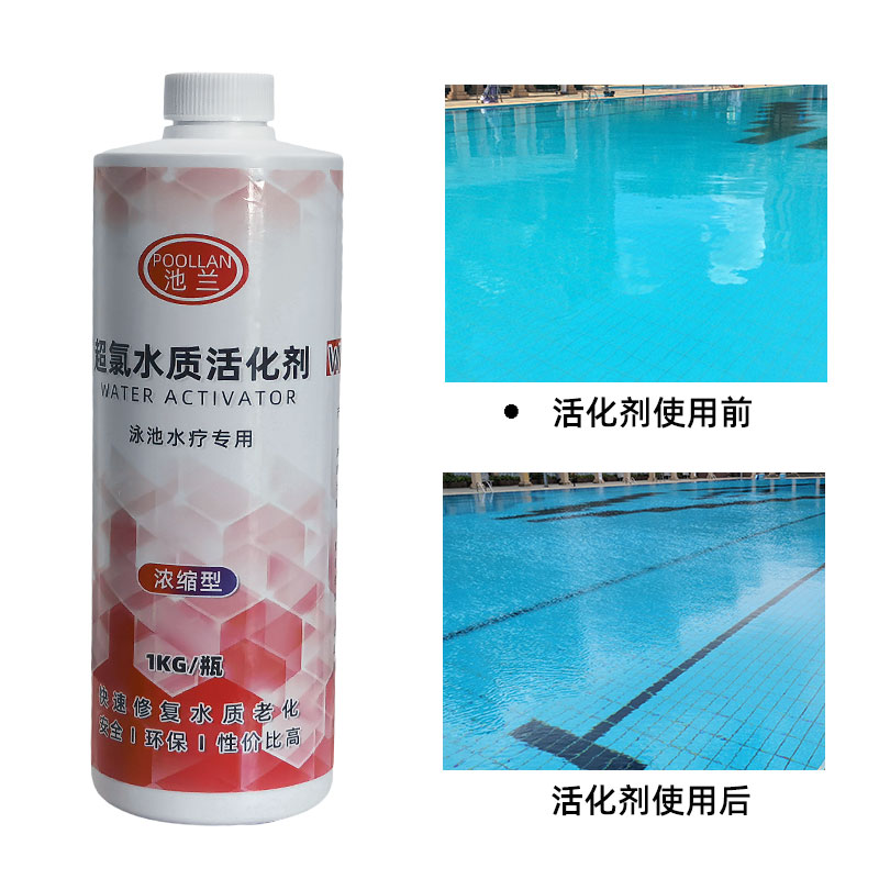 游泳池水處理中經(jīng)常會遇到水質(zhì)發(fā)渾,泛白的現(xiàn)象,這個時候你可以使用池蘭游泳池超氯活化劑配合科瑞德澄清劑使用。池蘭超氯水質(zhì)活化劑能快速修復(fù)水質(zhì)老化、增強消毒效果,消除氯臭味,防止水中化合性余氯產(chǎn)生、預(yù)防尿素超標問題的產(chǎn)生,避免泳客人頭發(fā)發(fā)黃,脫落,皮膚紅癢刺激性的發(fā)生。