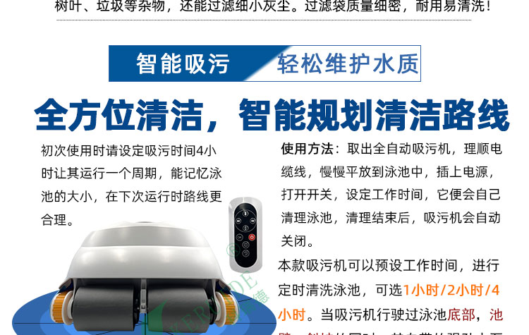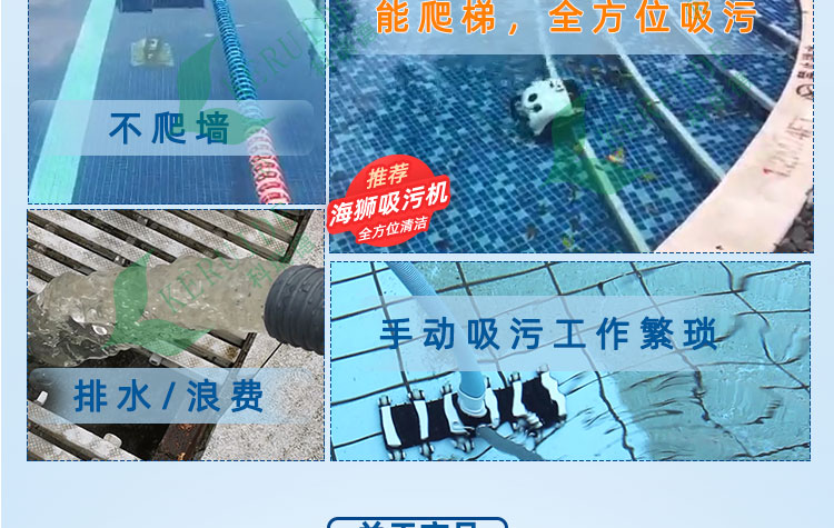 海獅全自動(dòng)吸污機(jī)是一款能爬墻/爬坡/爬階梯,能吸頭發(fā)、藻類(lèi)和細(xì)菌、死皮、大葉子和其他沉到水池底部污垢的全自動(dòng)吸污機(jī),無(wú)需人工在場(chǎng)也可以工作,大大地減少了工作量,提高工作效率,以下是海獅全自動(dòng)吸污機(jī)的詳情: