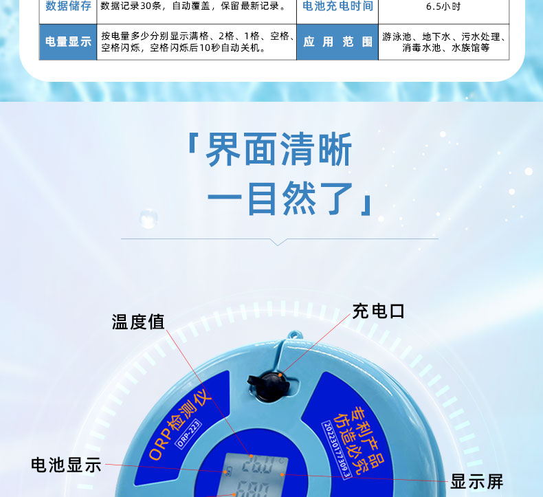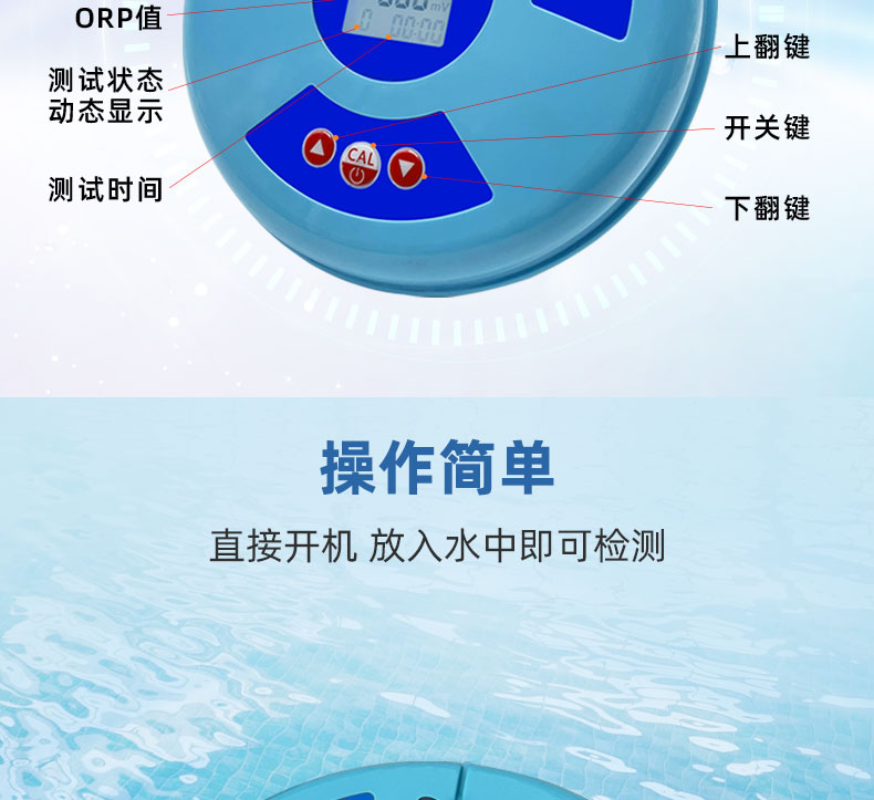 眾所周知,泳池營業時間都是爭分奪秒的,但是水質問題卻會頻繁發生。有時候余氯很高,但是水質還是發生渾濁或者其他問題,可能是ORP值造成的。ORP值可以用來監測池水中消毒效果強弱,值的高低會與泳池的余氯/pH/濁度/溫度有關,所以它也是一個重要的參數。泳池配備一臺ORP水質檢測就非常有必要了。科瑞德ORP檢測儀可大大改進氧化還原水處理技術的精準控制水平,從而提高水處理處理效果,這款ORP檢測儀界面清晰,一目了然,15分鐘可以快速地檢測出池水中的ORP值,滿足新國標GB37488-2019的要求。