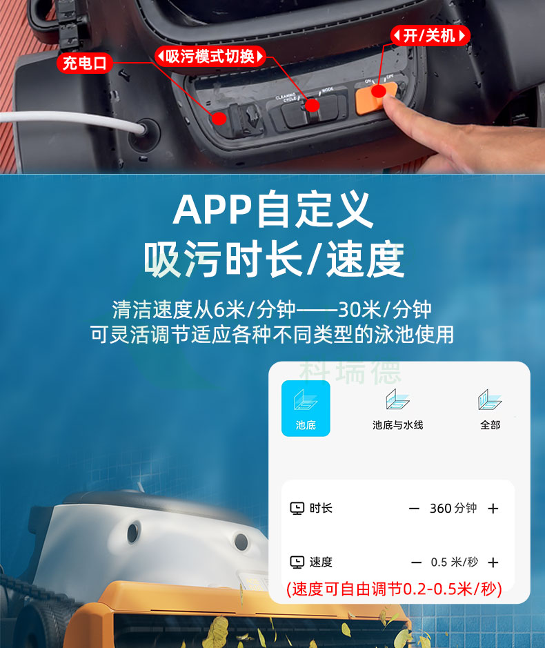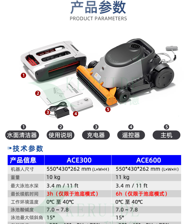 “ACE600全自動吸污機”續航高達6小時它能迅速將泳池底部的各類雜質,如灰塵、沙粒、毛發、