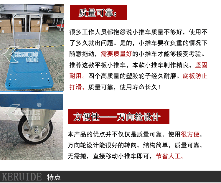 2,質(zhì)量可靠:本款小推車(chē)重要部位由不銹鋼制成,經(jīng)久耐磨。