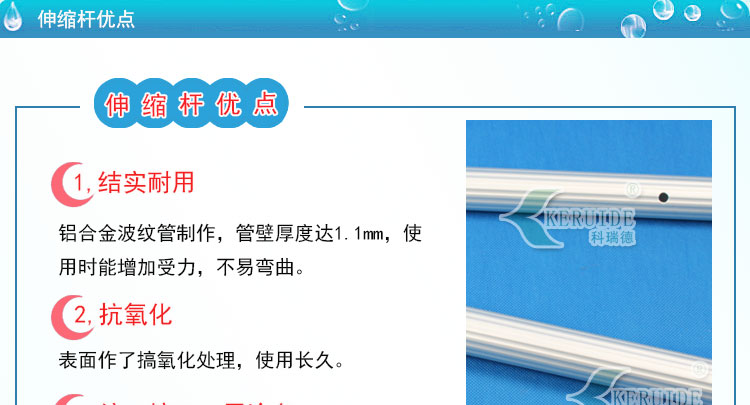 伸縮桿屬于游泳池吸污用品的一種。也叫游泳池伸縮桿,吸污機(jī)伸縮桿,救生桿等。