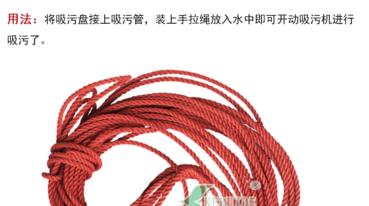將吸污盤接上吸污管,裝上手拉繩放入水中即可開動吸污機進行吸污了。