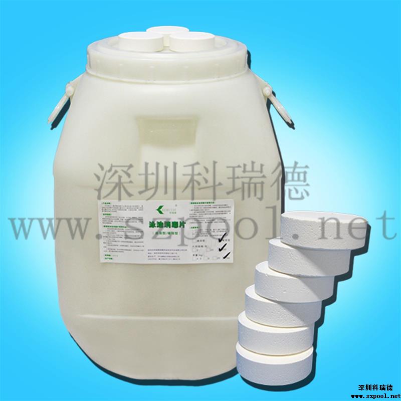 【包裝規格】:200g/片,50kg/桶。為緩溶消毒片。(因為藥片比較大,也叫大片游泳池消毒片)