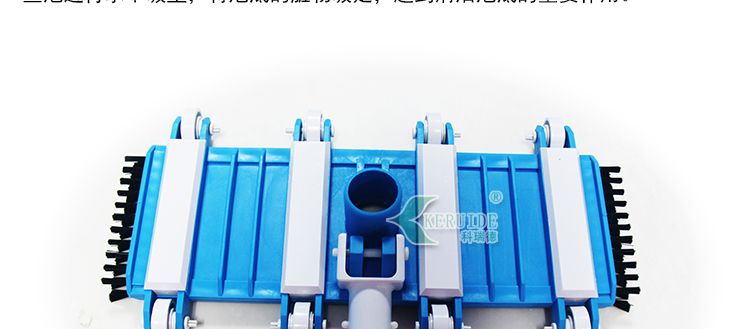 3、側面均帶毛刷,吸污時還可以對池底進行刷洗。(當吸污頭經過池壁臟處,需要先用毛刷先將臟物刷落,然后吸污頭將臟物吸入吸污管,進行過濾。)