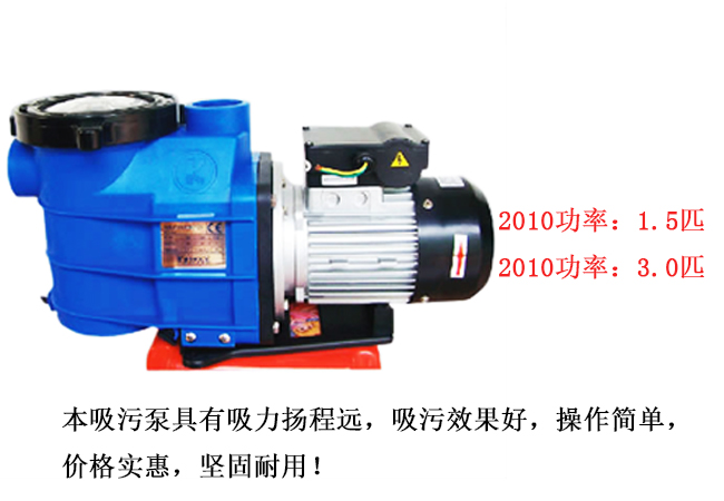 吸污泵(快巴)功率為1.5匹,快巴吸污泵是游泳池水泵的一種,質(zhì)量可靠,價(jià)格實(shí)惠。