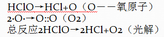 由式中可見,次氯酸見光分解生成了鹽酸及氧氣,氧氣就揮發走了,這就是我們所說的次氯酸會揮發的原因!在分解過程中產生的氧原子具有很強的氧化能力,通過氧化細菌及病毒細胞中的蛋白質來殺滅細菌及病毒。