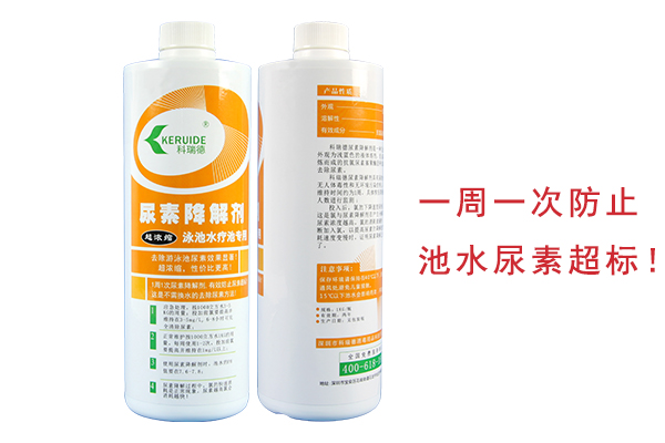 (2)尿素降解劑:科瑞德尿素降解劑是處理游泳池尿素使用的藥劑,泳池尿素清零,使水清澈,使用尿素降解劑后一般需要6-8小時左右的時間能清除水中的尿素,效果明顯,適合各類泳池尿素超標應急處理。